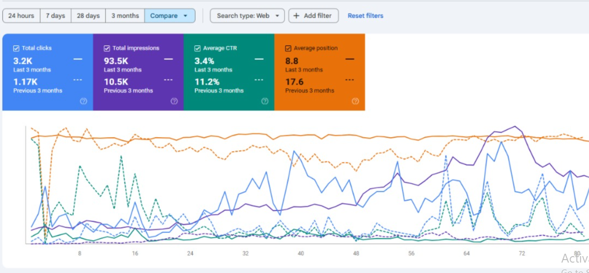 Google Search Console comparison: Last 3 months vs previous 3 months