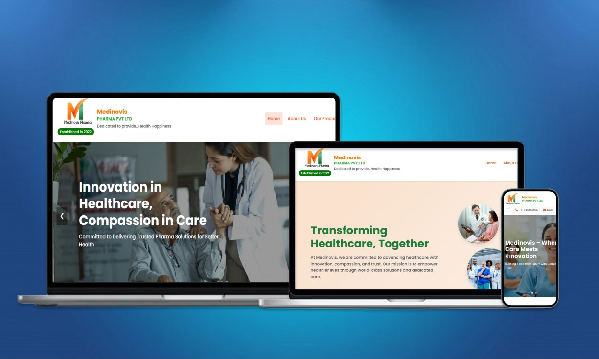 Medinovis Pharmaceuticals Pvt. Ltd. is a trusted manufacturer of high-quality pharmaceutical products and formulations. The goal of this digital platform was to present accurate, verified, and transparent product information for healthcare professionals, distributors, and patients.