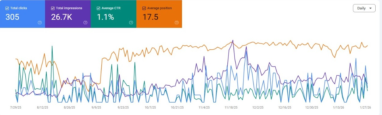 Google Search Console comparison: Last 6 months